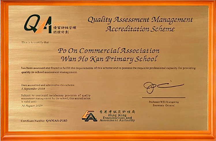 The Hong Kong Examinations and Assessment Authority (HKEAA) is the sole authority to issue the accreditation of the Quality Assessment Management Accreditation Scheme (QAMAS) to schools. Being accredited under the QAMAS, our school is recognized for its capacity in providing fair, reliable and valid examinations and assessment for the students. It also shows that we equip with a high standard of examination and assessment management.